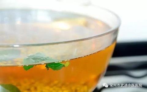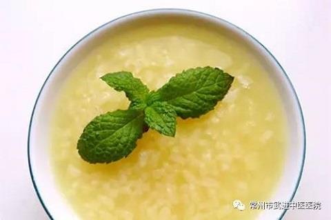 做法:取薄荷15克,煎汤俟冷。以粳米60克煮粥,待粥将成时加入冰糖适量,再煮一二沸即可。可供早晚餐温热服食。