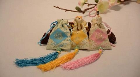 功效:香囊里芳香性中药的挥发性气味通过口鼻黏膜、肌肤毛窍、经络穴位、经气血经脉的循行而遍布全身,可以起到调节气机、疏通经络的作用。香囊里不同药物发挥的作用各异,以芳香辟秽、祛邪解毒为主的药物可以预防感冒。