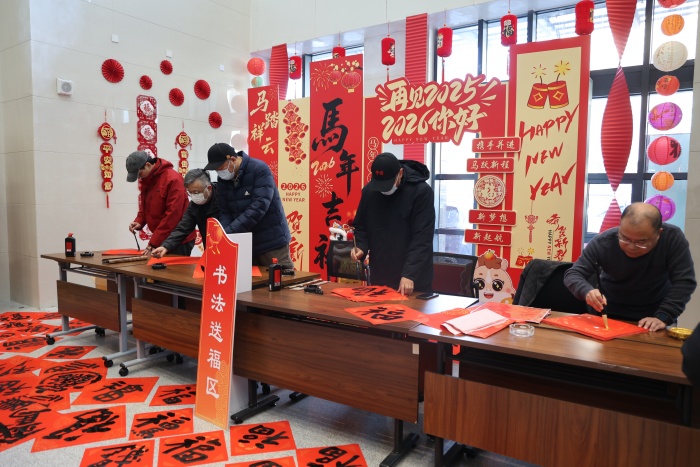 最具年味的当属书法送福区。来自常州市书法家协会的名家现场挥毫泼墨,笔走龙蛇间,一幅幅饱含新春祝福的“福”字跃然纸上。市民们争相领取这份独一无二的手写祝福,有的驻足观看名家创作,有的迫不及待地展示刚领到的福字,现场洋溢着浓浓的新春温情。