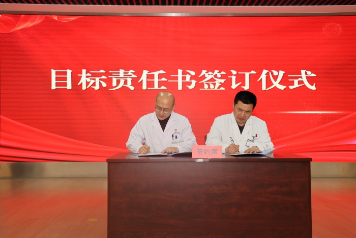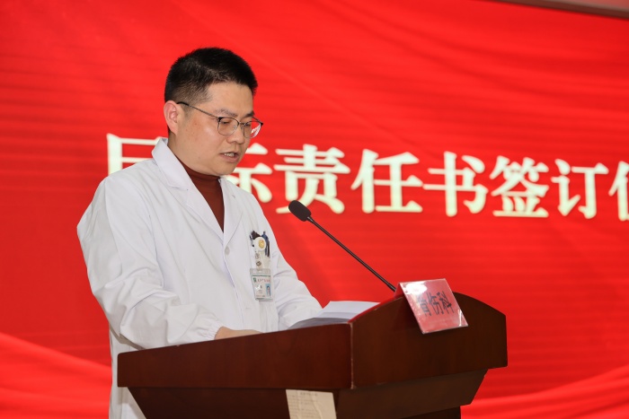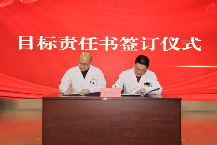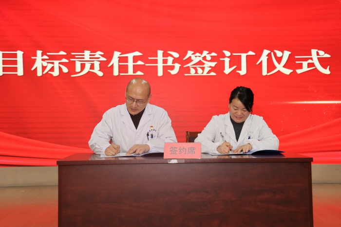 会议现场气氛庄重而热烈,举行了新晋省市级中医重点专科集中授牌仪式。授牌结束后,骨伤科、妇科、乳腺病科、心血管病科等科室的代表围绕年度发展目标、重点工作举措作交流发言,分享思路、表态决心。随后,各科室代表现场签订目标责任书,以“军令状”的形式压实责任、凝聚共识,确保各项部署落地生根、见行见效。