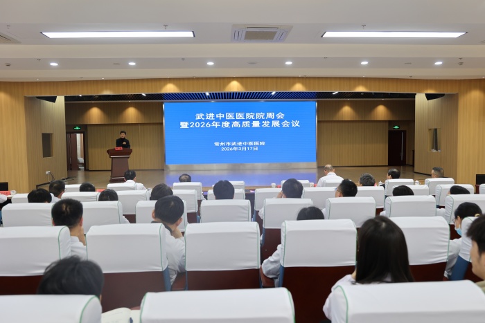 春潮涌动启新程,实干担当谋发展。3月17日下午,武进中医医院2026年度高质量发展会议在三楼学术报告厅召开。会议旨在系统总结过往发展成效,科学擘画新一年发展蓝图,动员全体干部职工以更加昂扬的姿态、更加务实的作风,抢抓“十五五”开局新机遇,全力开启医院高质量发展的崭新篇章。院领导班子成员及中层以上干部参加会议。